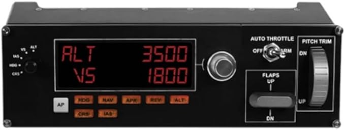 Saitek's Pro Flight Multi Panel is a full autopilot LED display that works with flight simulator software, effectively removing the need to use onscreen controls. An integrated dial adjusts settings for quicker selection of your required altitude. Additional functions also allow adjustment of your aircraft's throttle, flaps, and elevator trim. The full autopilot panel gives you fingertip control over a multitude of settings within FSX, X-Plane*, and Prepar3D software. No longer do you have to zoom into your flight sim's onscreen controls to make modifications; you can manipulate your aircraft's autopilot settings with physical controls that immediately trigger in-sim actions.
